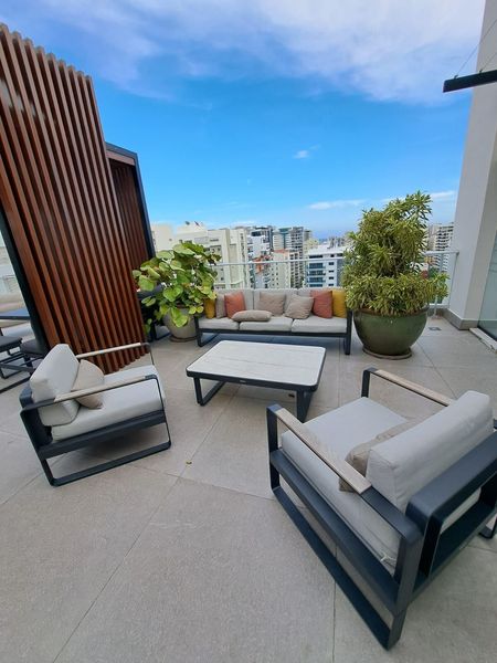 Exclusiva propiedad en alquiler en el sector de naco edificio recién construido con área social, seguridad 24 horas y lobby, parqueo soterrado y piscina con vista al mar.