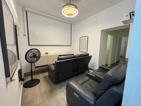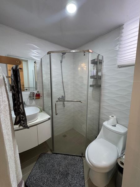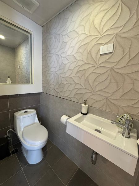Baño completo en el área común con lounge cerrado con televisión