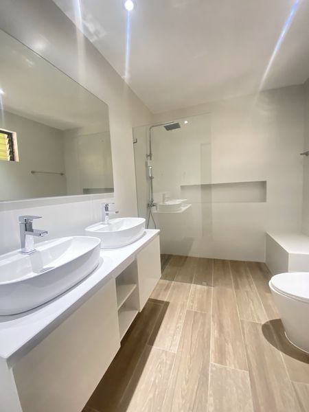 3 habitaciones c/u con baños nuevos .