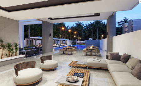 Caribbean-inspired lush gardens, social areas, a gym, and sleek, minimalist finishes.