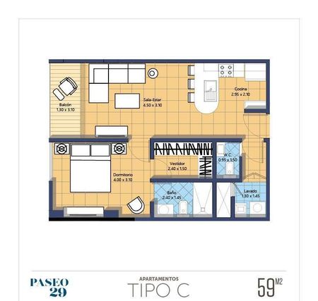 1 Hab, 1 1/2 Baño, Sala-Comedor,Area Lavado,con muy buena distribucion.