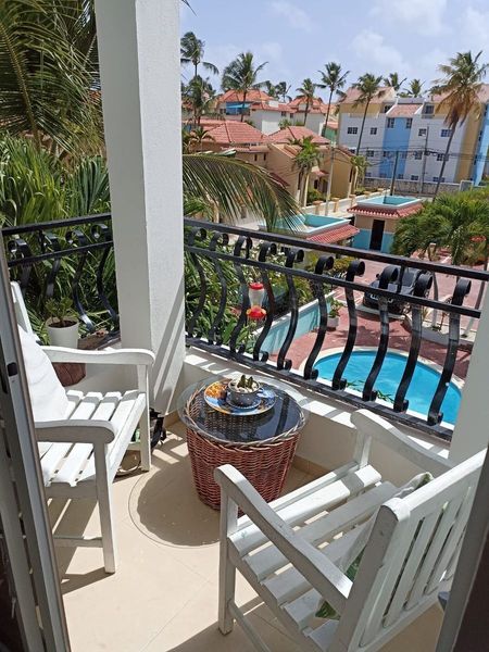 - Balcón con vista a la piscina