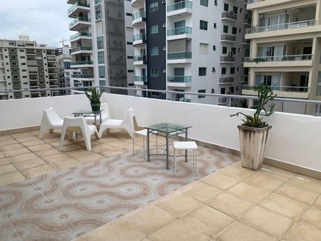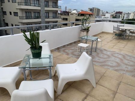 Apartamento tipo ESTUDIO con Terraza privada en la exclusiva zona de Piantini, UNA habitación con su baño y closet, sala, desayunador. cocina equipada con línea blanca. un parqueo. La Torre cuenta con Areas Sociales, GYM y Terraza para Eventos , lobby seguridad 24 horas. Una Parqueo. Sera toda una dicha vivir en este apartamento. Se encuentra cerca de Supermercado y principales vias de la ciudad