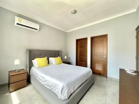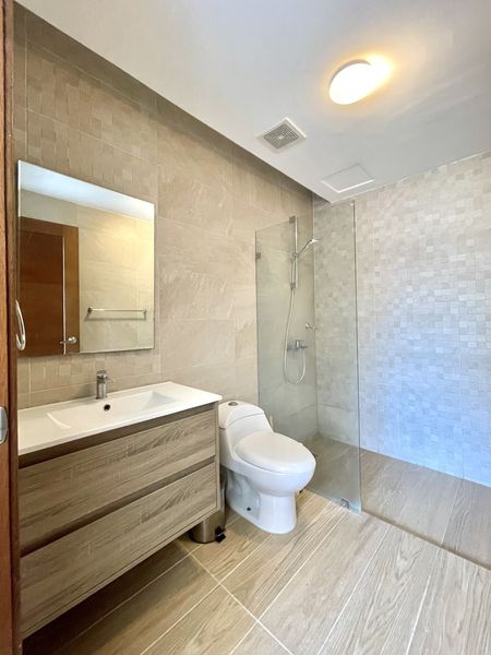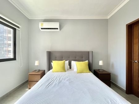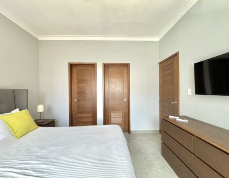 El apartamento cuenta con una amplia habitación, dos baños completos, sala, comedor, desayunador y cocina equipada, además de un práctico área de lavado. Todo el espacio está totalmente climatizado y decorado con un estilo moderno y acogedor. Además, incluye conexión de Internet de alta velocidad (opcional) para quienes trabajan desde casa o disfrutan del entretenimiento digital sin interrupciones.