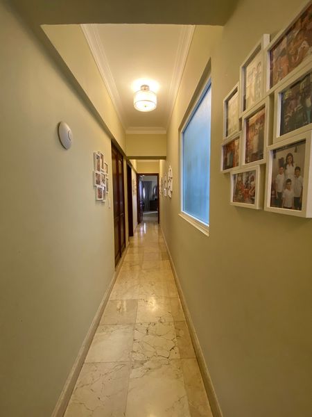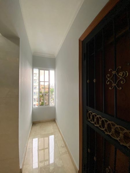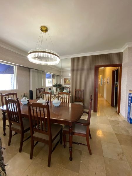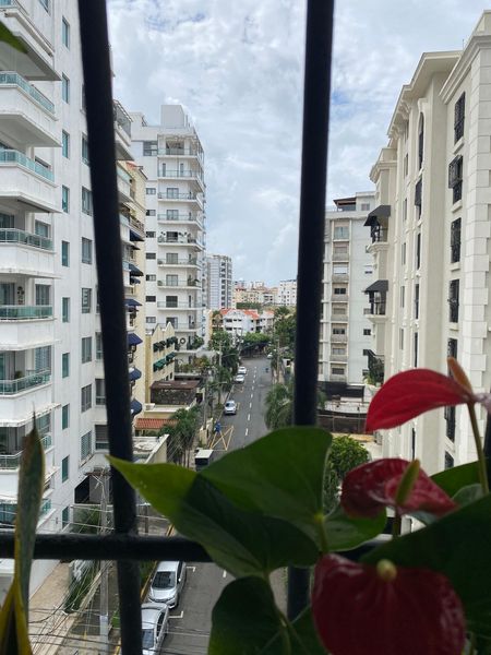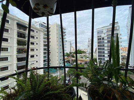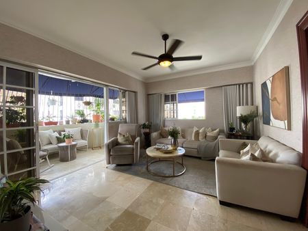 Apartamento clásico en Naco con pisos de mármol, vista panorámica y balcón.