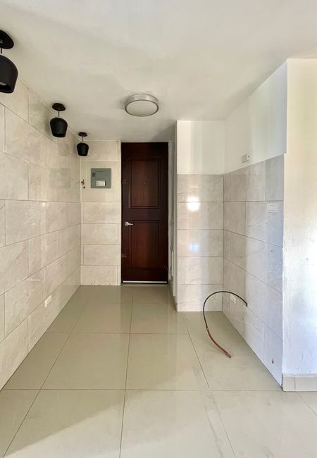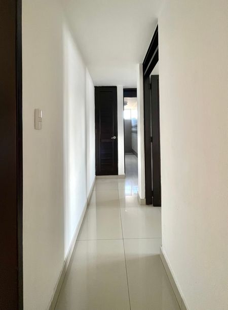 Con 110 metros cuadrados, el apartamento ofrece una distribución práctica y acogedora: sala-comedor, cocina independiente, área de servicio con su baño, y un baño completo adicional. Está ubicado en un octavo piso, accesible mediante un ascensor, y cuenta con un parqueo asignado.