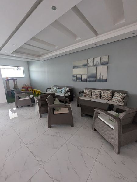 Lobby de recepción amueblado y climatizado