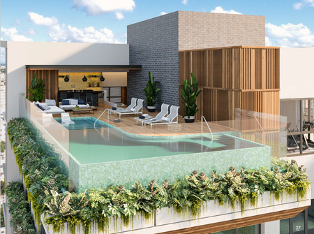 Su fachada está conceptuada en generar una edificación alta, esbelta y elegante, compuesta de volúmenes puros que resaltan un estilo de diseño minimalista, con grandes ventanales que maximizan las vistas hacia la ciudad, al parque mirador sur y al mar; generando a la vez una permeabilidad en ventilación e iluminación.