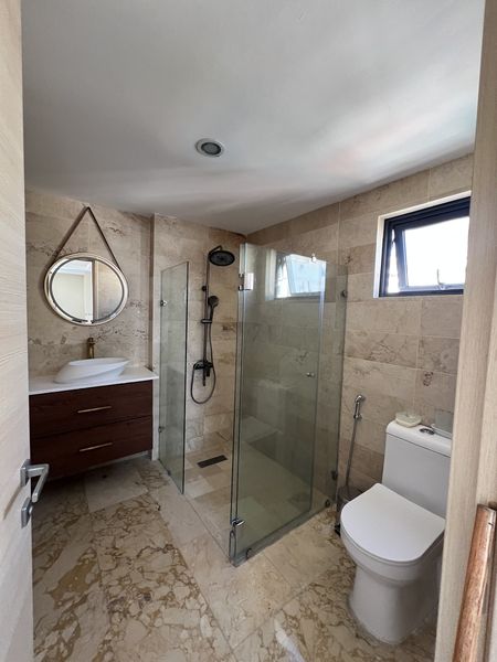 - Cuenta con 3 habitaciones con baño y walk-in closet, 3.5 baños, sala, comedor, cocina equipada, área de lavado, cuarto de servicio completo y balcón techado. Incluye 2 parqueos y aire acondicionado central.
