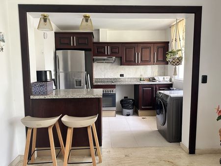 La propiedad cuenta con una distribución cómoda y funcional, ideal tanto para uso residencial como para alquiler vacacional o de largo plazo. Dispone de cocina totalmente equipada, áreas sociales bien definidas, aire acondicionado, WiFi de alta velocidad y parqueo privado.