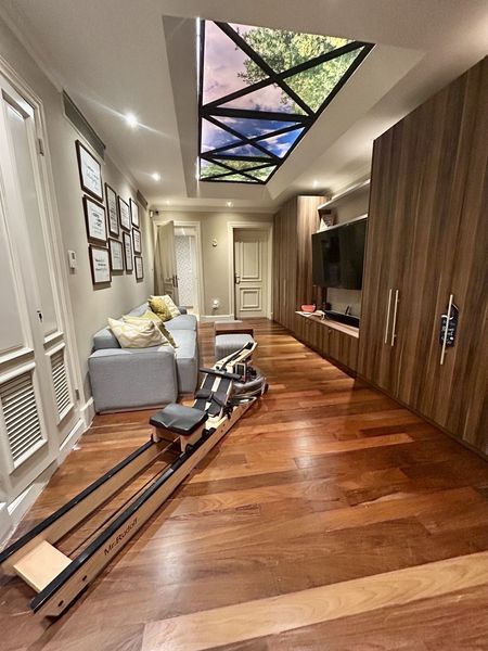 Estudio con pisos de madera