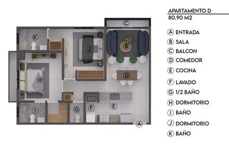 Apartamentos de 2 Habitaciones con Balcón, Sala – Comedor , Cocina, baño de visitas, Parqueo techado y Área de lavado.