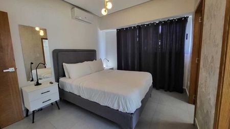 Es un apartamento amueblado y con línea blanca, de 1 habitación con baño y walk in closet, baño de visita, sala-comedor, cocina, y balcón con ventanales que brinda mucha luminosidad. Adicionalmente, cuenta un área de lavado para ubicar equipo de lavado no incluido.