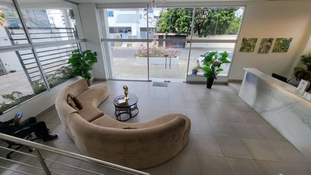 Dentro de las comodidades y amenidades tiene lobby, un amplio recibidor, piscina, solárium, gimnasio, lavandería, spa por un costo adicional, centro de negocios para reuniones, 1 parqueo asignado en 4 niveles de estacionamiento cubierto, y un lounge bar y bistró en remodelación.