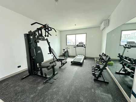 Edificio residencial con recibidor climatizado, ascensor, planta full, gimnasio, terraza común y seguridad 24 horas.