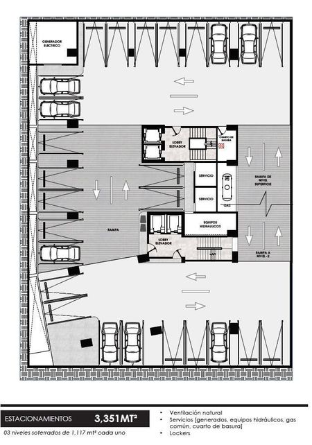 3,351 m de estacionamiento en 3 soterrados