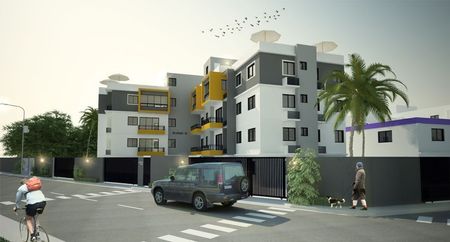 Este proyecto consta de UN (1) edificio en bloques y hormigón armado, el cual será de CUATRO (4) niveles, con TRES (3) apartamentos por nivel, de DOS (2) ó TRES (3) habitaciones, con UNO (1) ó DOS (2) parqueos y con o sin cuarto de servicio.