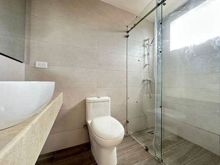 Habitación Principal: Amplio WC y baño con zonas separadas: lavamanos independiente más ducha e inodoro.