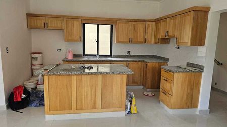 * Cocina con desayunador tipo isleta, tope en granito y despensa.