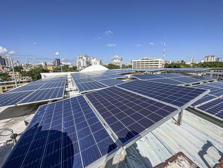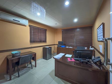 Cuenta con 30 kilos de paneles solares, ascensores, escalera interna, escalera de emergencia, almacenes en cada piso, tienda en primer piso, oficinas en segundo piso, ultimo piso con area para empleados con mesa de billar, bar, area para hacer fiestas de los empleados, terraza al descubierto, vista al mar, realmente u edificio con todo lo que se necesita.