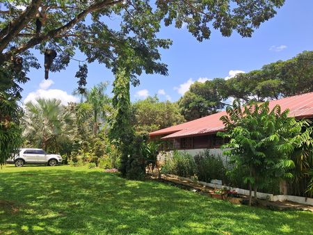 35 tareas de tierra , bien cuidada con mas de de 100 variedad de árboles y 500 orquídeas en un hermoso jardín., frente a,lavilla y alrededor de la misma.