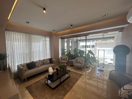 Amplio lobby de entrada, finamente terminado, climatizado y amueblado.