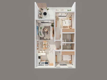 Cada uno de nuestros apartamentos podrás encontrar 25 unidades cada uno con un total de 75 apartamentos de 2 habitaciones. 3 edificios con espectaculares vistas, calidad y estilo de vanguardia.