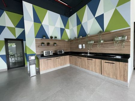 El edificio ha sido diseñado para ofrecer eficiencia y confort, con acceso controlado mediante tarjeta, lobby de recepción tipo front desk, rooftop, salas de reuniones y cafetería fría.