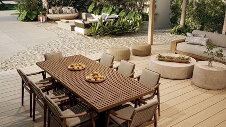 Zona de estar con cómodos sofás y cojines de alta gama para disfrutar del aire fresco y la tranquilidad y chaiselongue para tomar el sol y relajarse en privacidad.