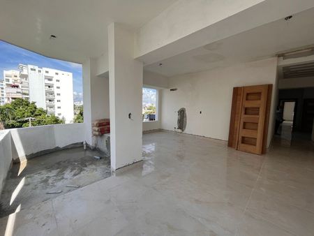 El penthouse de 2 niveles de 247 metros cuadrados con amplia terraza destechada en 2do nivel de 28mts y 73 mts entre habitacion principal y estar familiar . Posee 3 habitaciones con 4.5 baños con tope de mármol y walk-in closets en todas las habitaciones. Sala espaciosa, Estar familiar, comedor, 2 Cocina modular en madera con isla, área de lavado y cuarto de servicio.