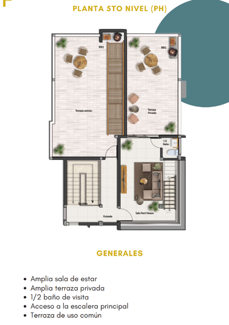 Terraza para uso común en azotea