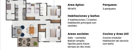 El cual está compuesto por sólo 5 edificios, 40 apartamentos, con un área aproximada de 98 mts. de construcción.