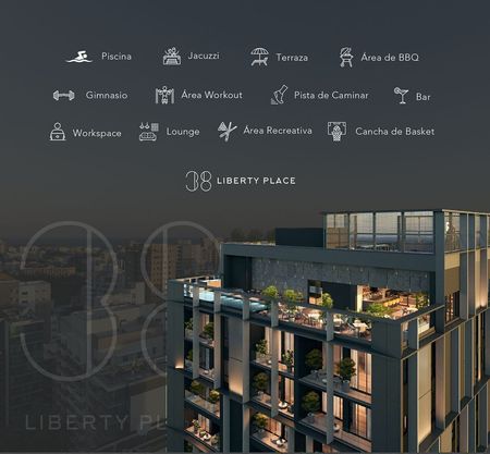 Moderna torre de apartamentos de 1 y 2 habitaciones con excelentes áreas sociales y 1 local comercial en el primer nivel el cual será destinado para un Restaurante / Café.