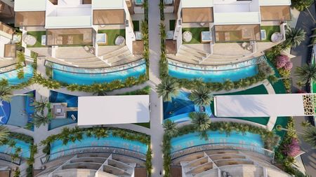 Cada apartamento incluye su propia piscina privada. Las zonas comunes están dotadas de zonas verdes y de sombra, y a la vez abiertas para la correcta ventilación en estas nuevas épocas en las que intentamos evitar los espacios cerrado.