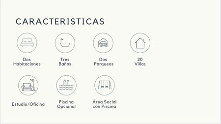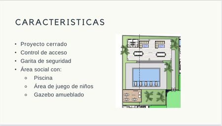 Un proyecto cerrado con 20 villas, y un área social con piscina y área de niños.