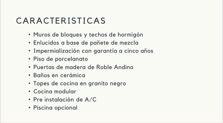 3 baños, sala, comedor, cocina abierta, terraza, marquesina para 2 vehículos, Piscina opcional.