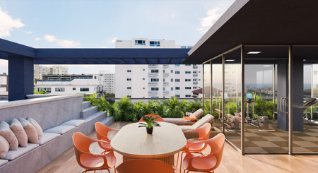 -Área social con gimnasio, piscina infinity y terraza techada