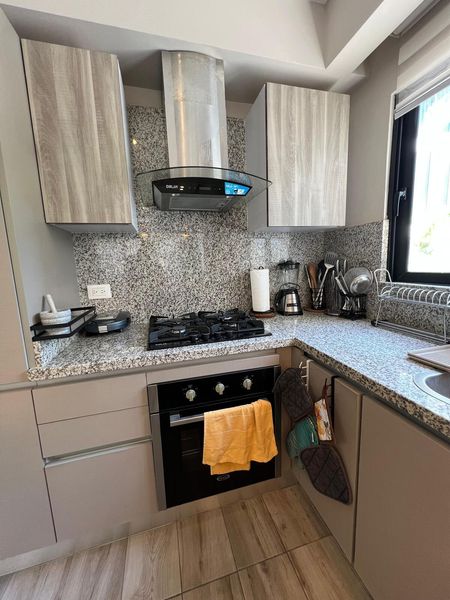 Cocina abierta con tope de granito
