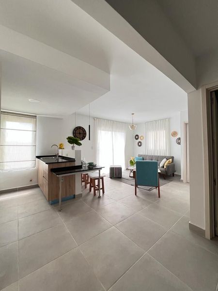 Edificios modulares con elevador, cada uno con 16 apartamentos. El diseño interior de las unidades ofrece una distribución igual en todos los apartamentos, se compone de: sala, comedor-desayunador, cocina, balcón, sala de estar (estudio), baño y dormitorio,