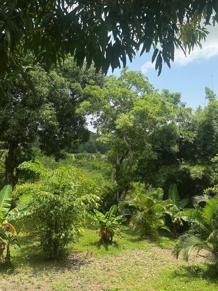 Terreno con alumbrado eléctrico, agua potable, sector en crecimiento cerca de escuelas y establecimientos comerciales. Con vegetación abundante, árboles frutales, y estructura para crianza de cerdos, portones metálicos, verja y almacén.