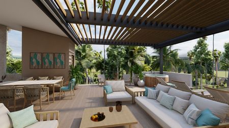Este apartamento (B304) de 128,2m2 está en el tercer nivel y tiene 1 habitación, 1 baño, 1 parqueo y terraza privada con baño y cocina. Ubicado dentro de un proyecto en el Sector de La Ceiba en Las Terrenas. A solo 7 minutos de Playa Bonita y a 10 minutos de playa Poppi y Playa Ballenas. Muy cerca también de comercios, supermercados, centro de salud y a 20 minutos del aeropuerto Internacional Pte. Juan Bosh.
