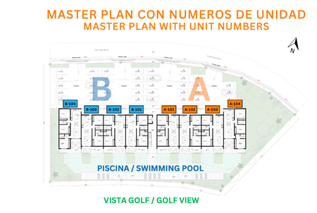 -24 elegantes apartamentos de 2 y 3 habitaciones. Todas unidades tienen vista al campo de golf.