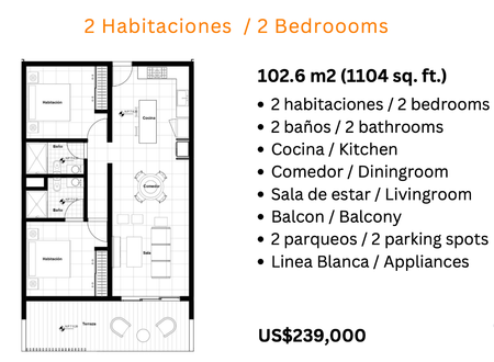-Todos apartamentos con 2 parqueos y balcón.