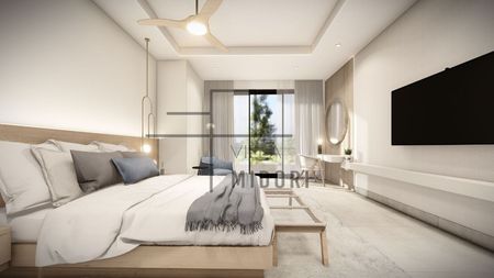 • Dormitorio Master 1, con baño integrado y walking closet. Terraza con amplia visual hacia el área de piscina.