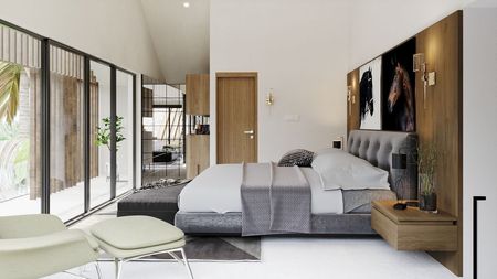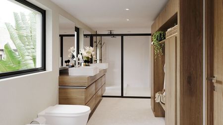 . Arquitectura y orientación de las villas adaptadas a los movimientos del sol para evitar calentamientos de fachadas y cristal, y tener máximo aprovechamiento con los paneles solares.